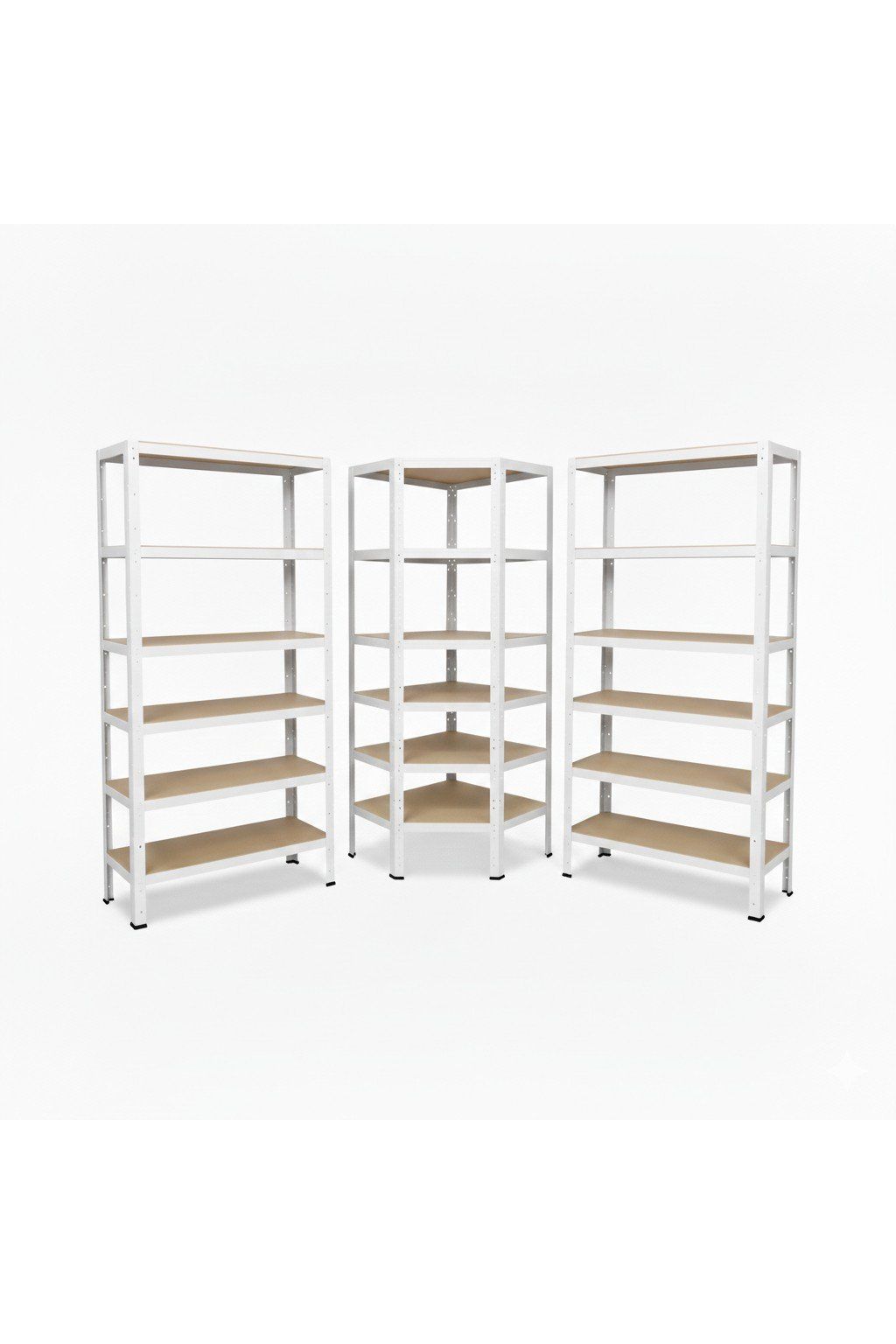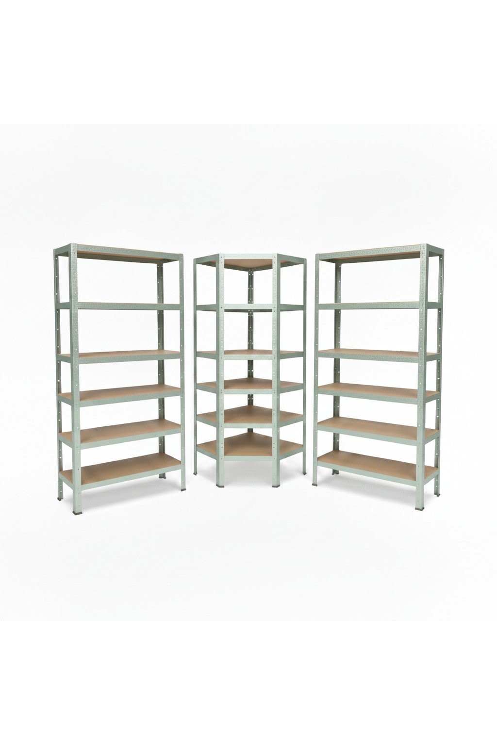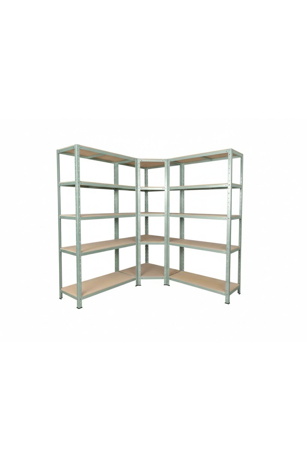 Regálový systém 180x180x60 cm: 1 rohový regál 180x90x60 cm + 2 policové regály 180x90x60 cm jako kompletní sestava umožňující vyplnit i místa v rozích pro skladování. 15 nebo 18 polic. Nosnost až 175 kg/polici. Regály jsou vybaveny HDF dřevěnými deskami. Vyrobeno v Německu. Doprava v ČR zdarma.