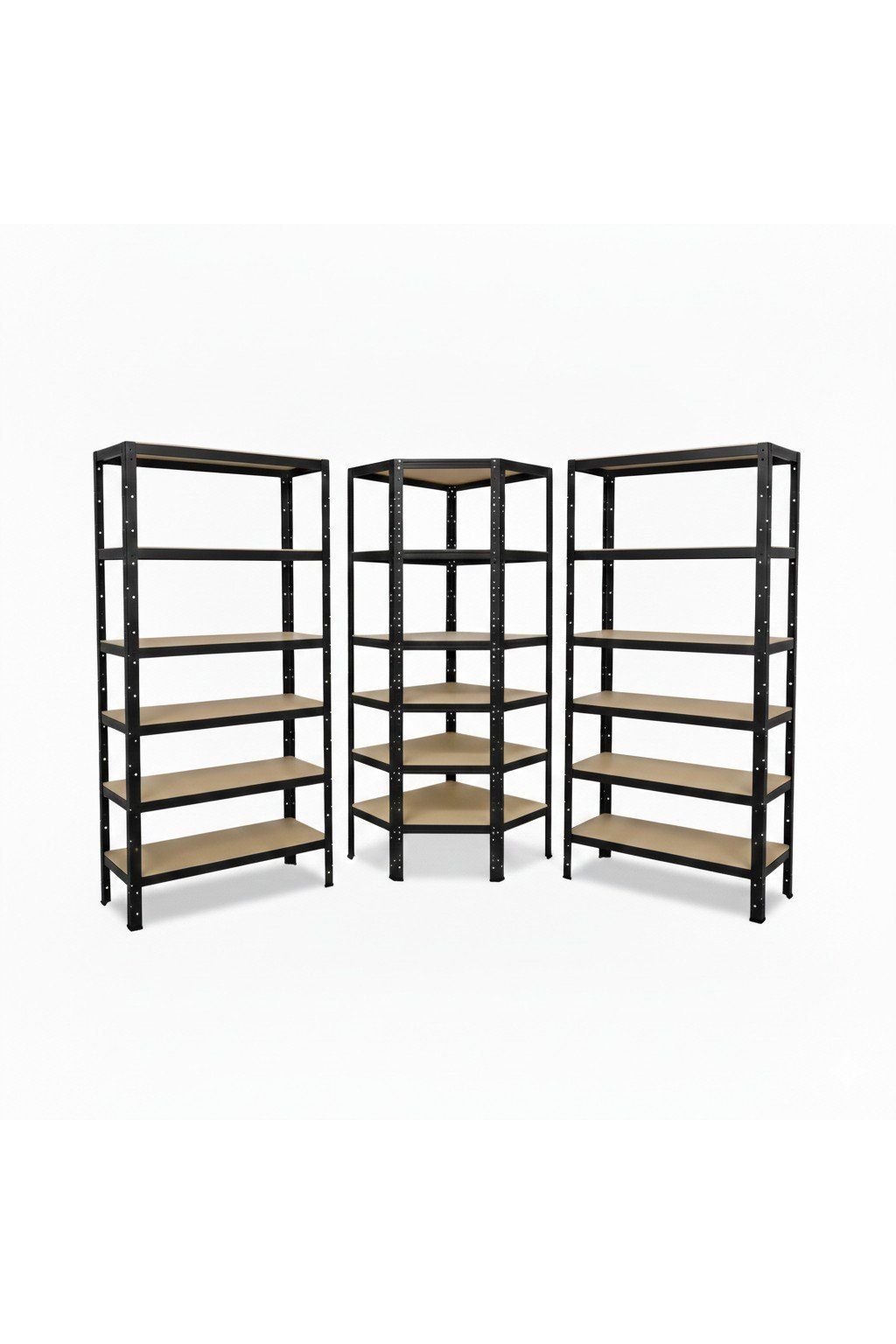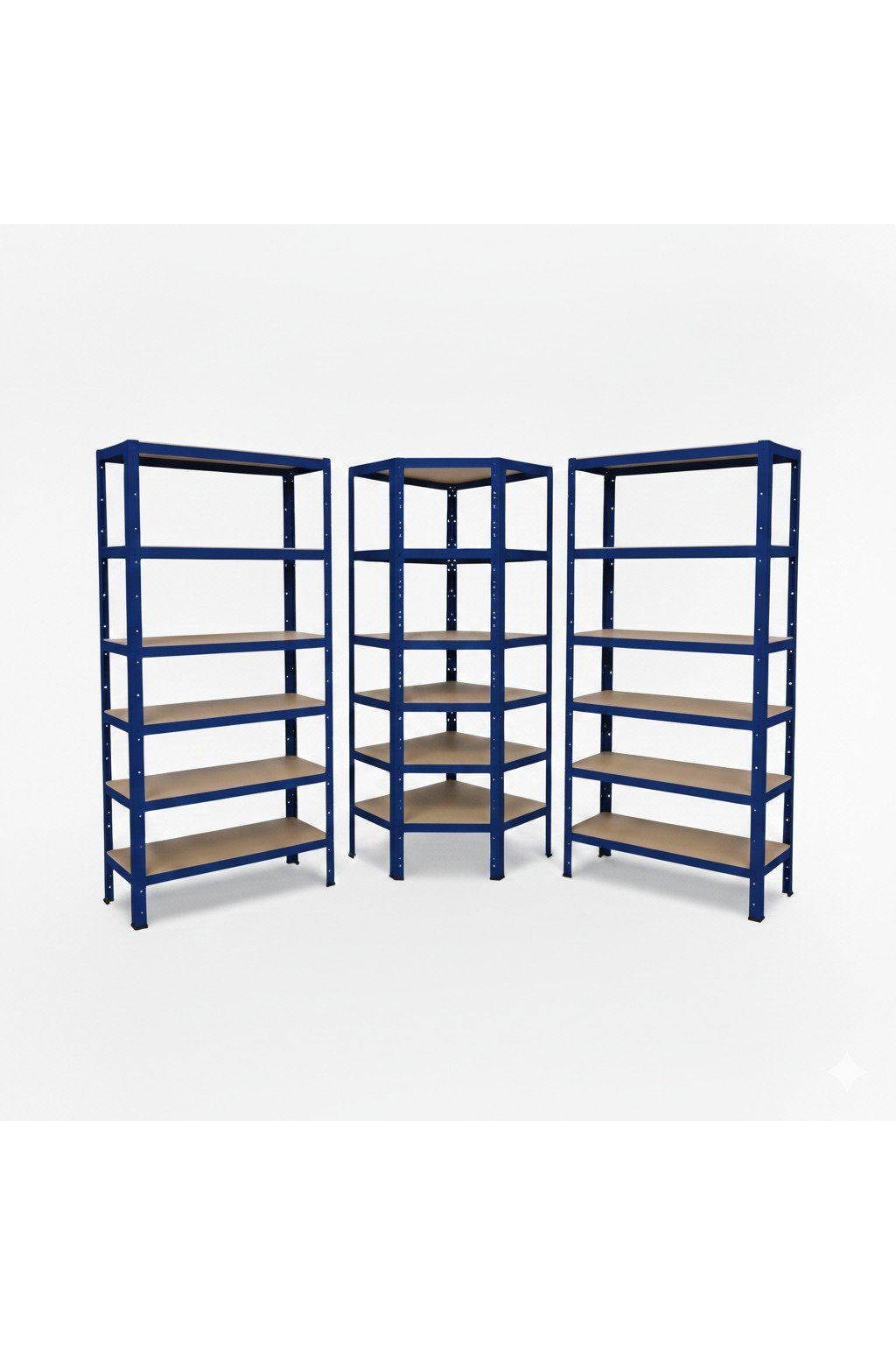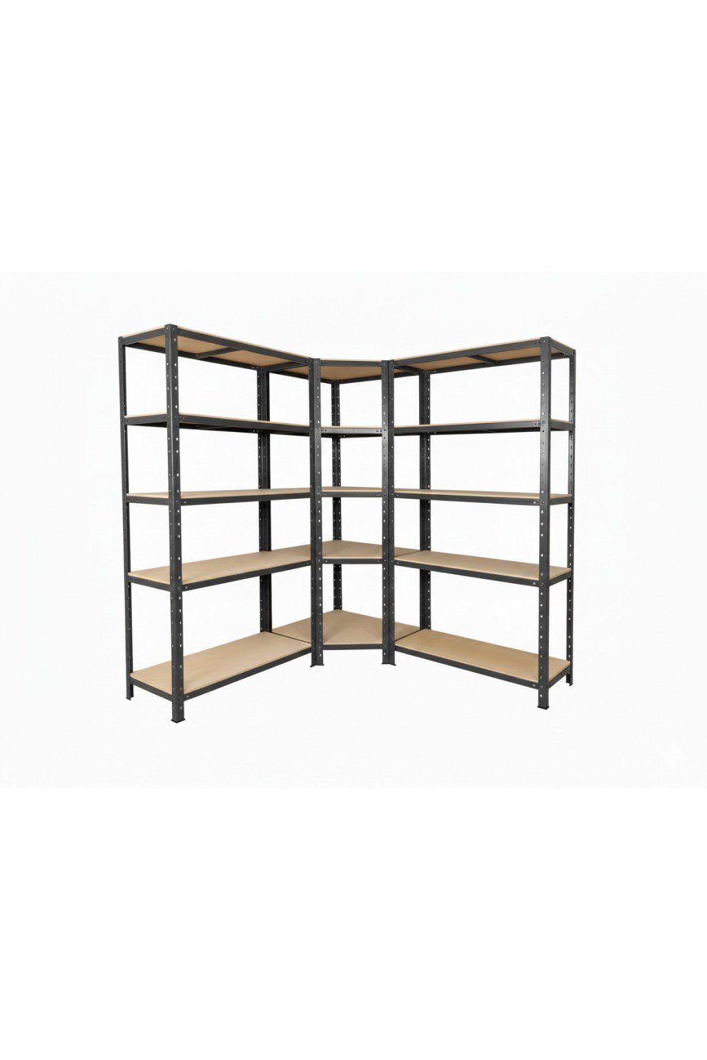 Regálový systém 200x180x50 cm: rohový regál 200x80x50 cm + 2 policové regály 200x100x50 cm jako kompletní sestava umožňující vyplnit místa i v rozích pro skladování. 15 nebo 18 polic. Nosnost 175 kg/polici. Regály jsou vybaveny HDF dřevěnými deskami, které jsou pro údržbu a čištění srovnatelné s kovovými deskami. Vyrobeno v Německu. Doprava v ČR zdarma.