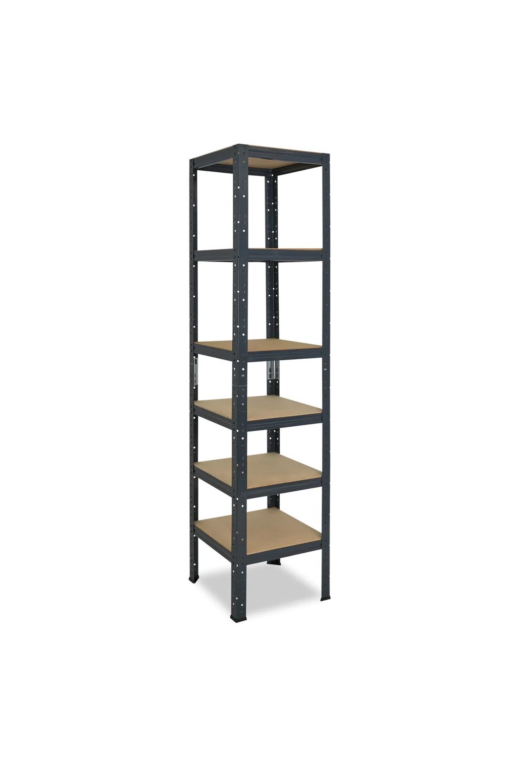 Policový kovový regál do omezených prostorů bytů či kanceláří. Regál je bezšroubový, jeho montáž je snadná díky zacvakávacím dílům. Úložná plocha 39x22 cm. Díky děleným stojinám lze sestavit i jako dva regály o výšce 90 cm. HDF dřevěné police jsou pevnější, mají hladký, snadno udržovatelný povrch. Jednoduchá montáž. Volitelný počet polic a barev.
