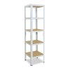 Policový kovový regál, bezšroubový do omezených prostorů bytů či kanceláří. Úložná plocha 49x39 cm akorát pro pár krabic od bot, sezónního oblečení, nebo pro uskladnění písemností. Díky děleným stojinám lze sestavit i jako dva regály o výšce 90 cm. HDF dřevěné police jsou pevnější, mají hladký, snadno udržovatelný povrch. Jednoduchá montáž. Volitelný počet polic a barev.