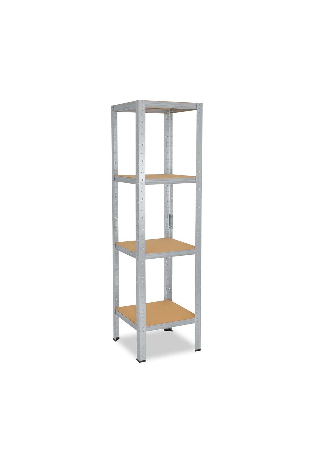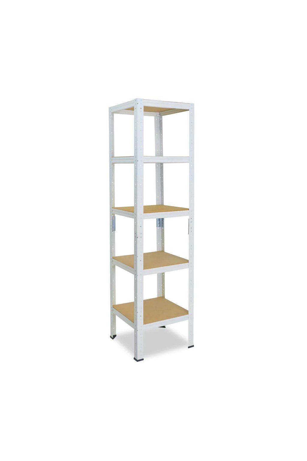 Policový kovový regál, bezšroubový do omezených prostorů bytů či kanceláří. Úložná plocha 49x39 cm akorát pro pár krabic od bot, sezónního oblečení, nebo pro uskladnění písemností. Díky děleným stojinám lze sestavit i jako dva regály o výšce 90 cm. HDF dřevěné police jsou pevnější, mají hladký, snadno udržovatelný povrch. Jednoduchá montáž. Volitelný počet polic a barev.