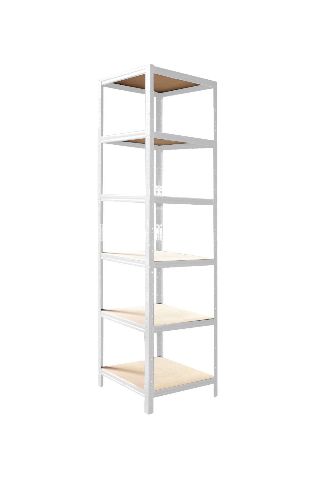 Policový kovový regál, bezšroubový do omezených prostorů bytů či kanceláří. Úložná plocha 59x49 cm akorát pro pár krabic od bot, sezónního oblečení, nebo pro uskladnění písemností. Díky děleným stojinám lze sestavit i jako dva regály o výšce 90 cm. HDF dřevěné police jsou pevnější, mají hladký, snadno udržovatelný povrch. Jednoduchá montáž. Volitelný počet polic a barev.