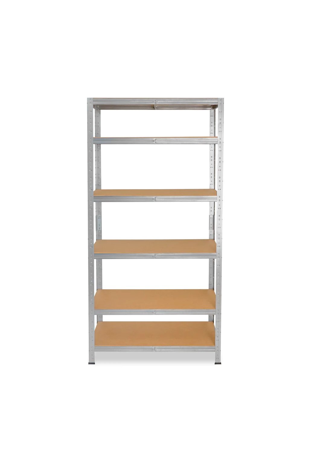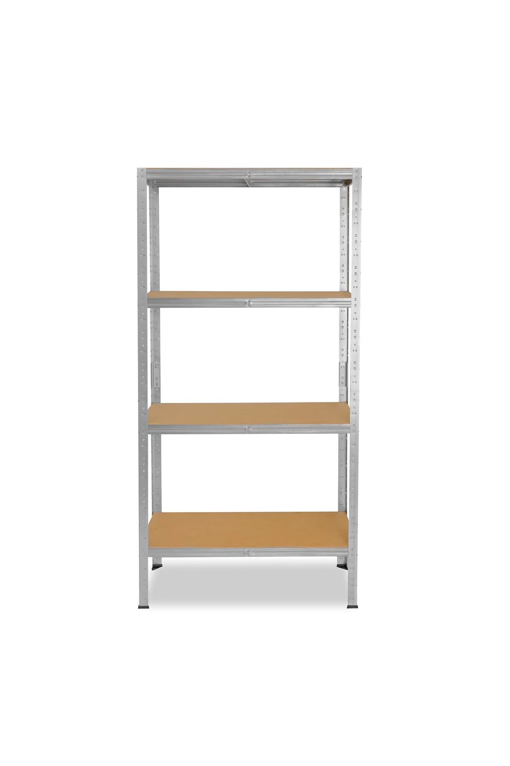 Kovový policový regál určený pro skladování předmětů a zboží v dílnách, skladech, prodejnách či garážích. Regál je bezšroubový, jeho montáž je snadná díky zacvakávacím dílům. Úložná plocha police 74x59 cm. HDF dřevěné police zaručují lepší pevnost než dřevotříska a díky hladkému povrchu i snadnější údržbu. Regál má dělenou stojinu, takže můžete postavit také dva regály o výšce 90 cm.
