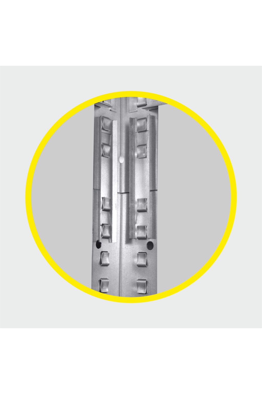 Regál je určený pro skladování těžších předmětů a zboží v dílnách, skladech, prodejnách či garážích. Úložná plocha police 69x39 cm. HDF dřevěné police zaručují lepší pevnost než dřevotříska a díky hladkému povrchu i snadnější údržbu. Regál má dělenou stojinu, takže můžete postavit také jako dva regály o výšce 100 cm. Unikátní systém s třemi montážními otvory pro lepší stabilitu a snadnější montáž.