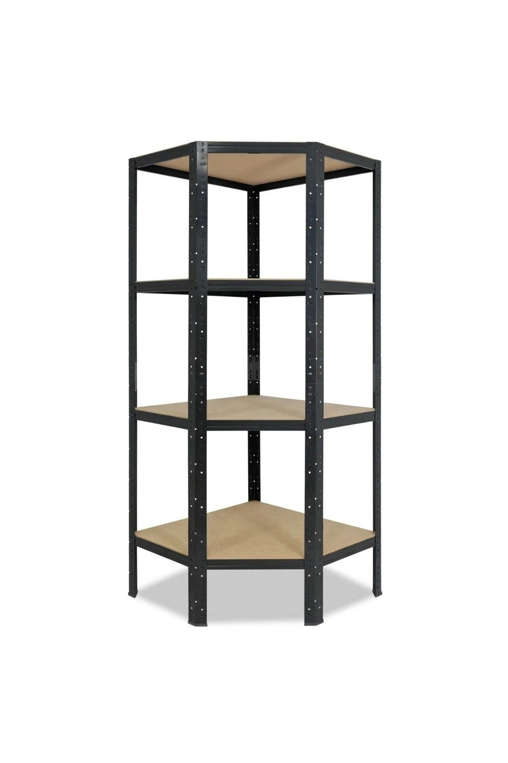 Rohový kovový regál, bezšroubový elegantně vyřeší skladování v rozích. Úložná plocha police 69x44 cm. Dělená stojina umožní sestavení i dvou regálů o výšce 78 cm. HDF dřevěné desky jsou pevnější než dřevotříska a mají hladký povrch pro snadnou údržbu. Pokud to prostory umožní, můžete přistavit další regálové pole s hloubkou 45 cm a k tomu získat objemovou slevu 5 až 10 %. Volitelný počet polic a barev.