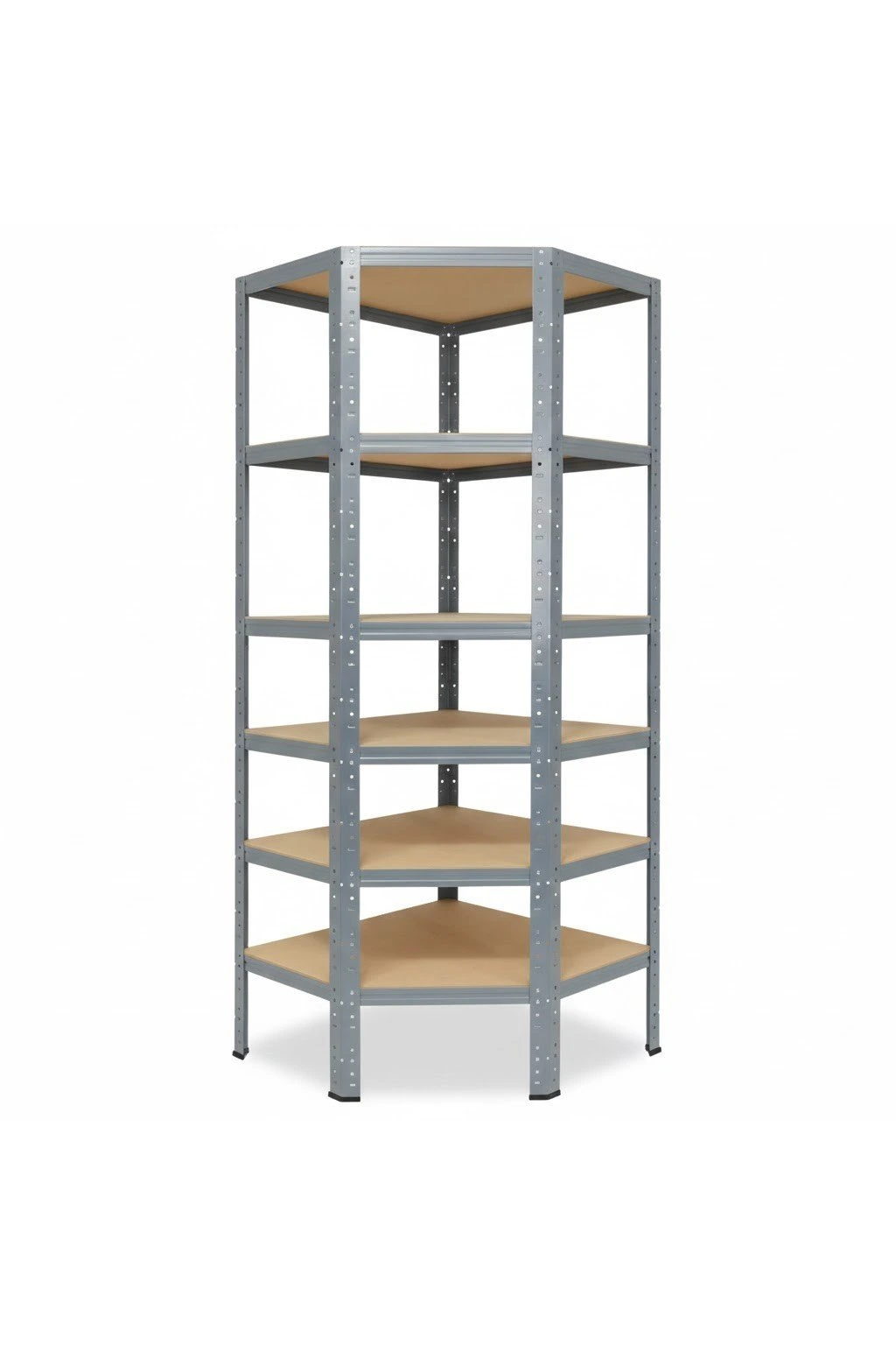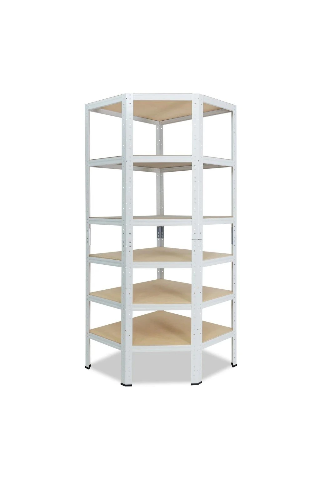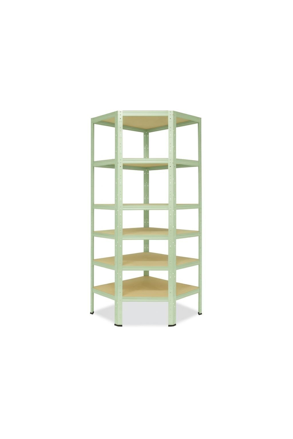 Rohový kovový regál, bezšroubový elegantně vyřeší skladování v rozích. Úložná plocha police 69x39 cm. Dělená stojina umožní sestavení i dvou regálů o výšce 100 cm. HDF dřevěné desky jsou pevnější než dřevotříska a mají hladký povrch pro snadnou údržbu. Pokud to prostory umožní, můžete přistavit další regálové pole s hloubkou 40 cm a k tomu získat objemovou slevu 5 až 10 %. Volitelný počet polic a barev.