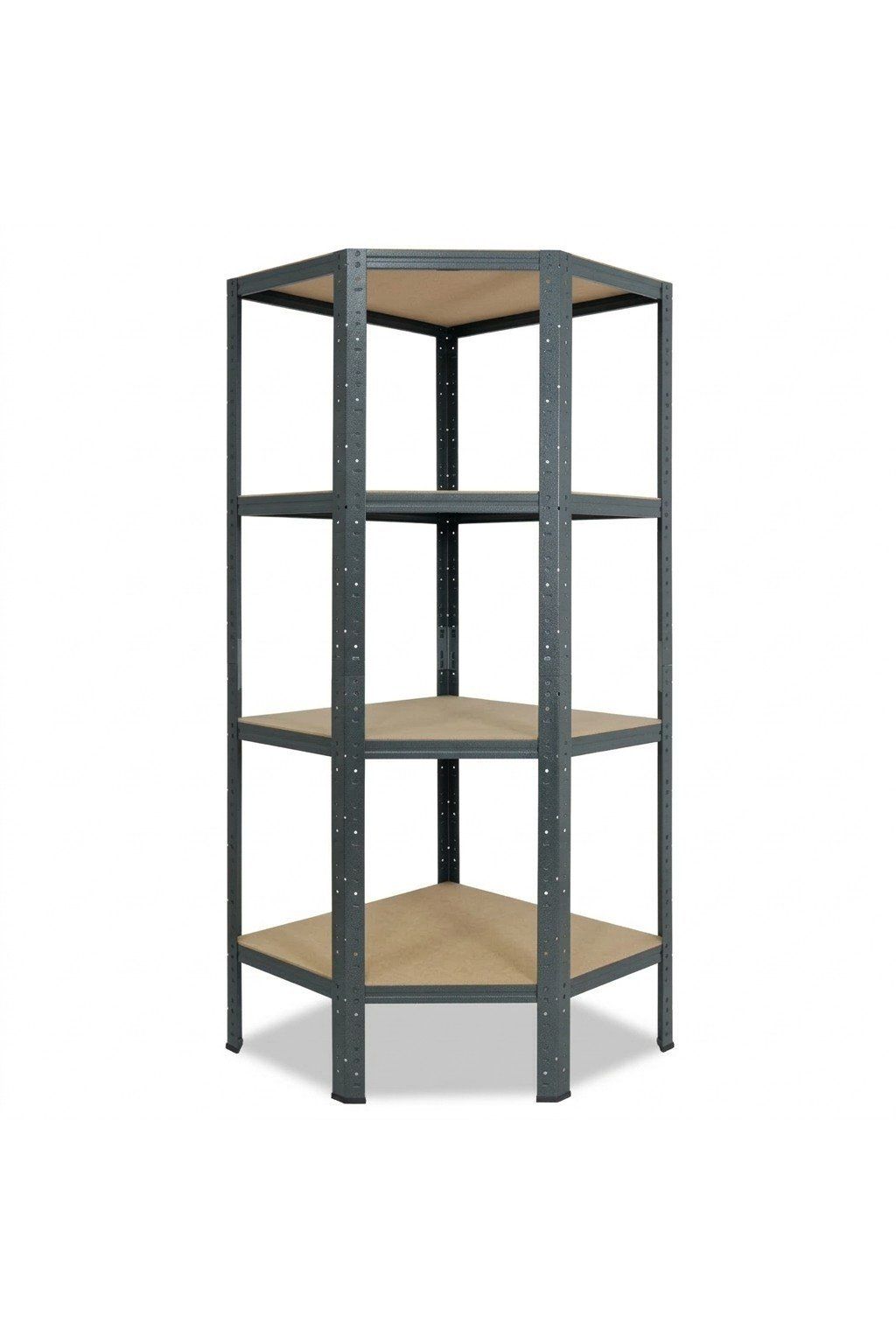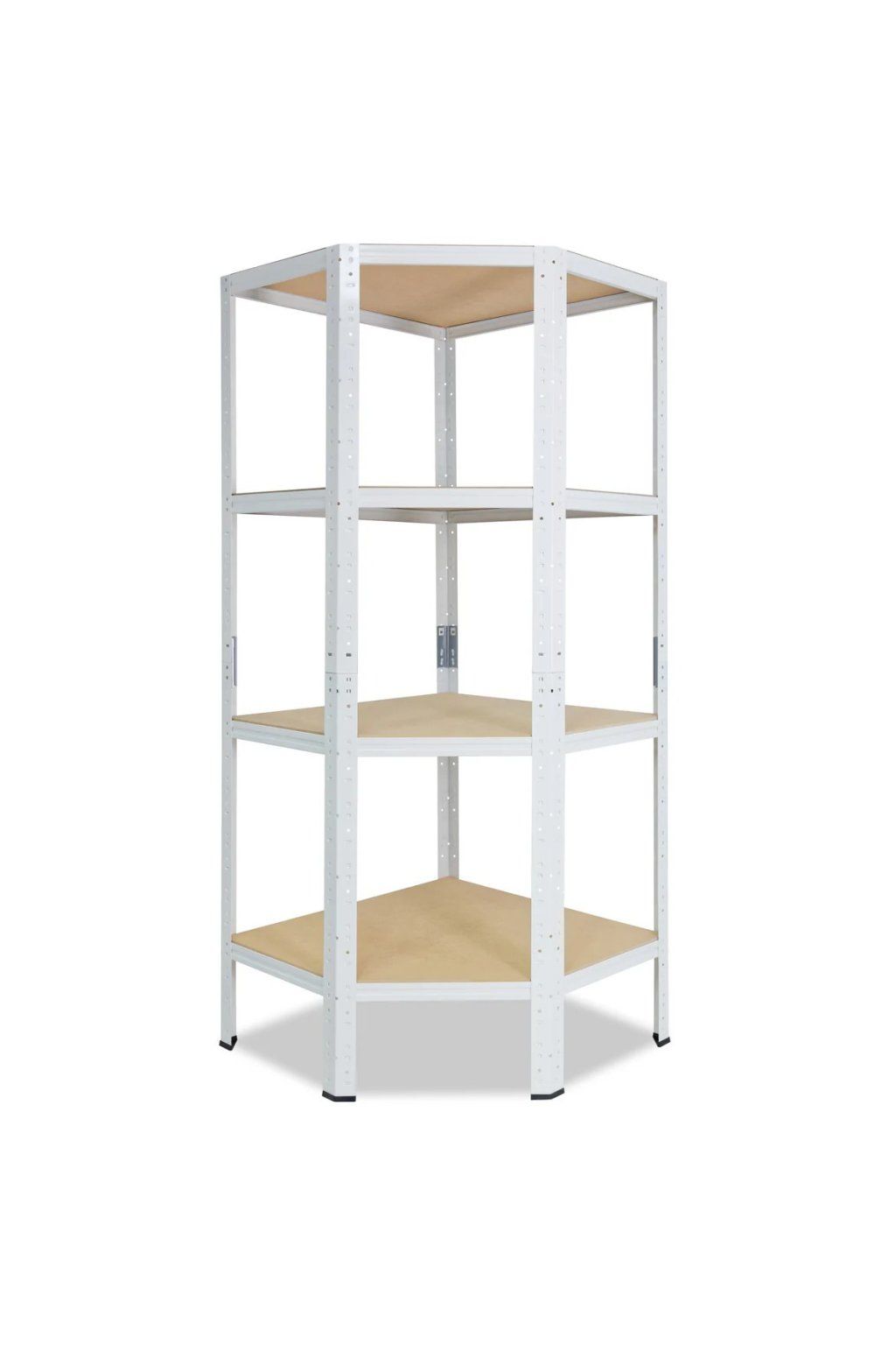 Rohový regál 155x70x40 cm, 5-6 HDF dřevěných polic. Nosnost až 175 kg/polici. Vyrobeno v Německu. Doprava v ČR zdarma.