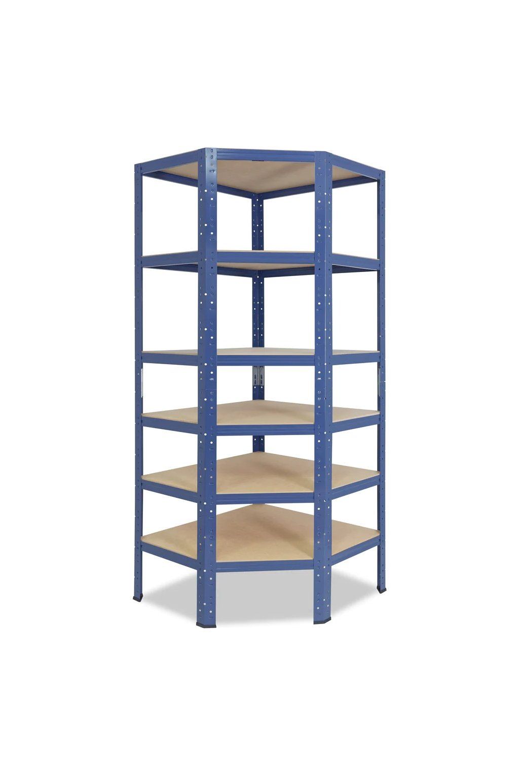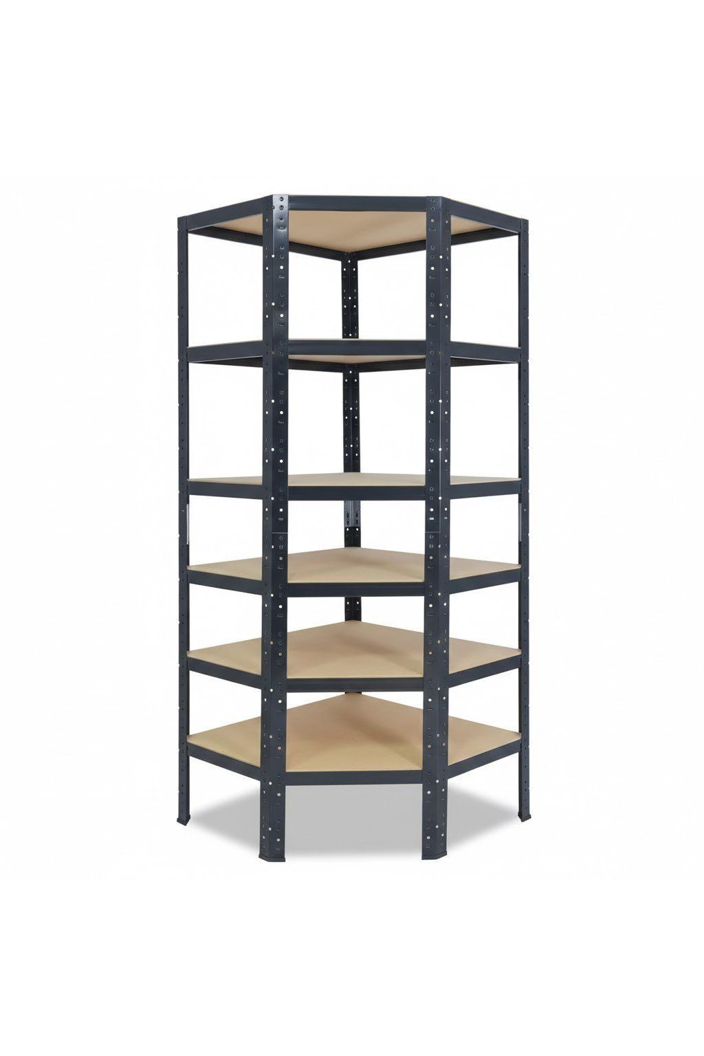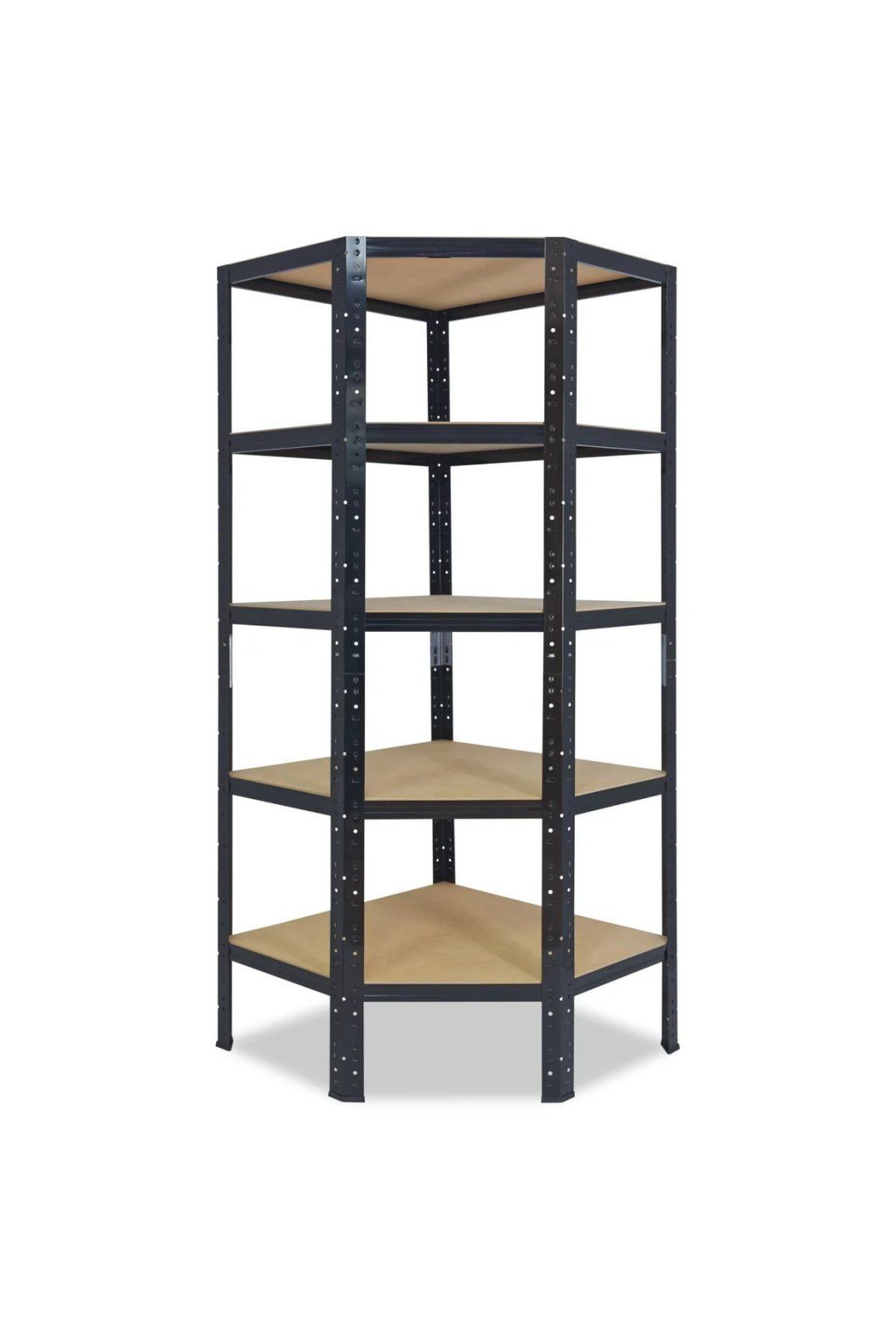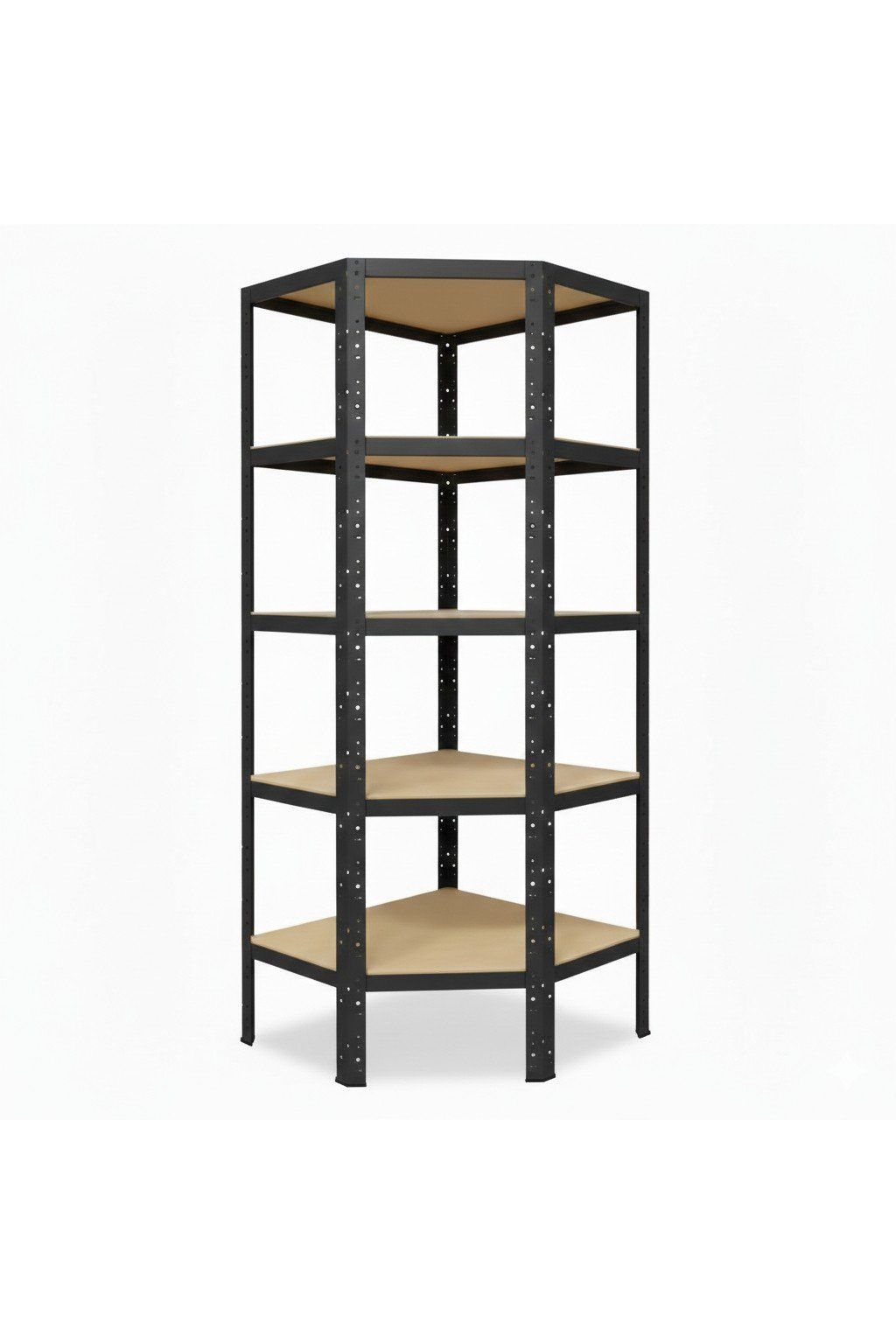 Rohový regál 180x70x45 cm, 5-6 HDF dřevěných polic. Nosnost až 175 kg/polici. Vyrobeno v Německu. Doprava v ČR zdarma.