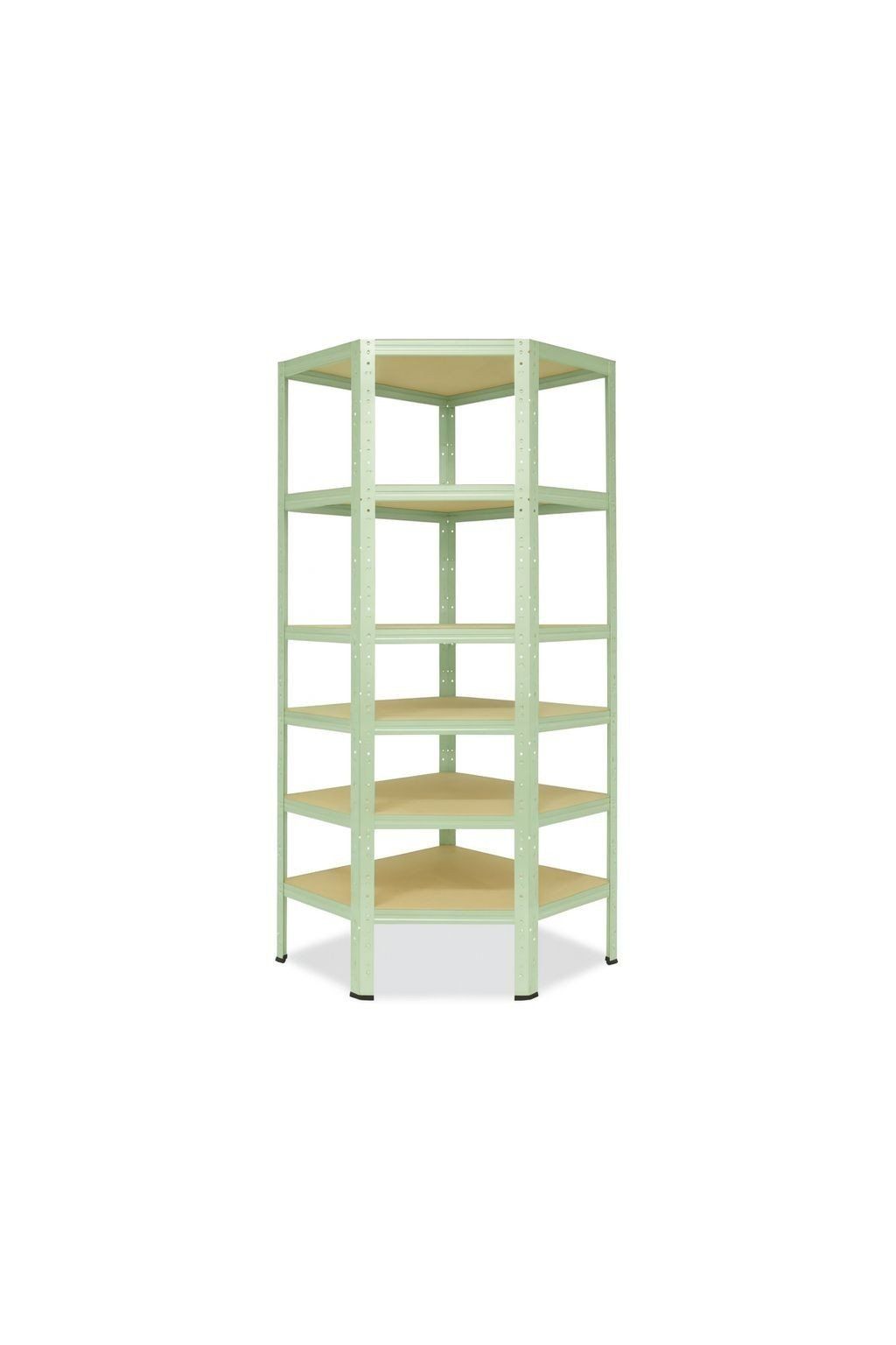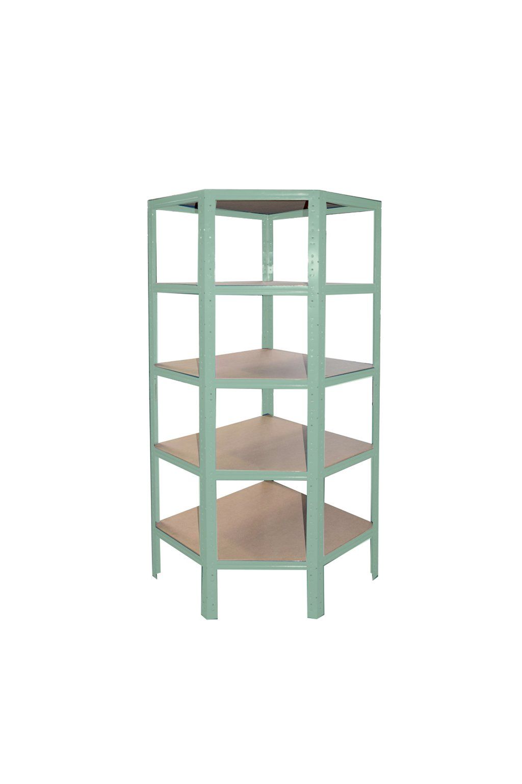 Rohový kovový regál, bezšroubový elegantně vyřeší skladování v rozích. Úložná plocha police 69x44 cm. Dělená stojina umožní sestavení i dvou regálů o výšce 90 cm. HDF dřevěné desky jsou pevnější než dřevotříska a mají hladký povrch pro snadnou údržbu. Pokud to prostory umožní, můžete přistavit další regálové pole s hloubkou 40 cm a k tomu získat objemovou slevu 5 až 10 %. Volitelný počet polic a barev.